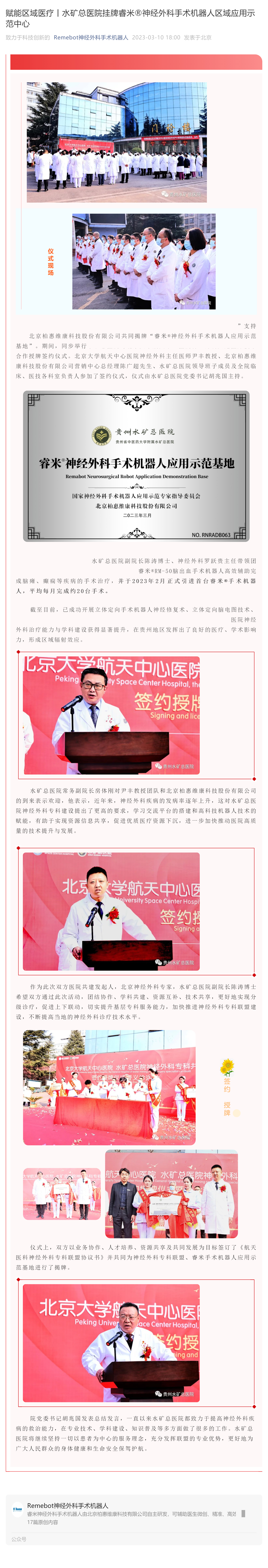 賦能區(qū)域醫(yī)療丨水礦總醫(yī)院掛牌睿米?神經(jīng)外科手術(shù)機(jī)器人區(qū)域應(yīng)用示范中心