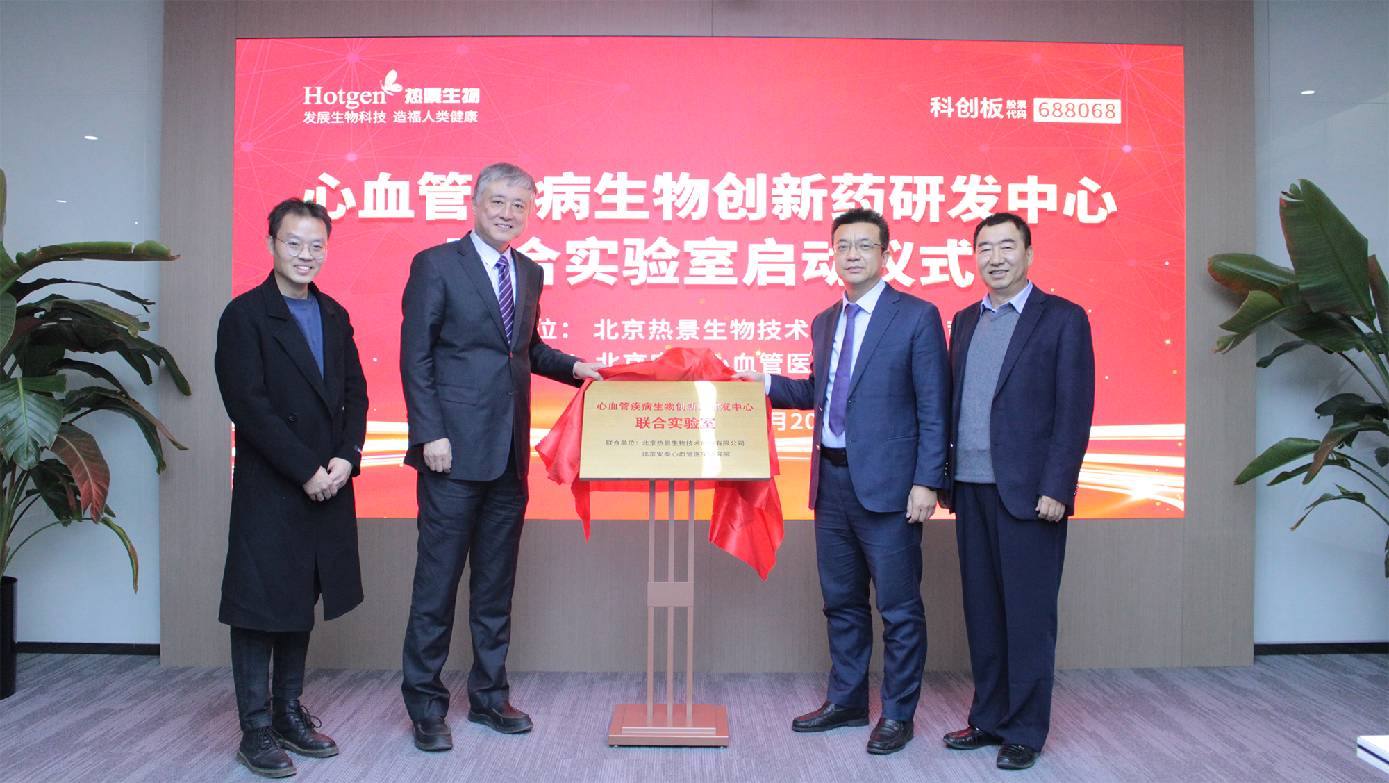 2023年11月20日,北京熱景生物技術(shù)股份有限公司董事長兼總裁林長青先生、北京安泰心血管醫(yī)學(xué)研究院院長杜杰教授、北京舜景生物醫(yī)藥技術(shù)有限公司總經(jīng)理孫志偉教授共同為“心血管疾病生物創(chuàng)新藥研發(fā)中心聯(lián)合實驗室”揭牌,這是一場具有里程碑意義的啟動儀式,標志著熱景生物及其關(guān)聯(lián)公司在安泰心血管研究院的加持下,聚焦心血管疾病從診斷到治療的研發(fā)進入快速發(fā)展階段。