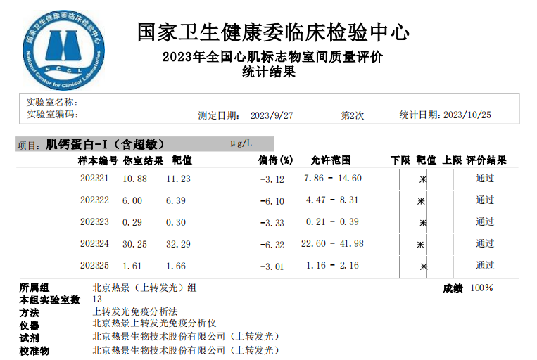 心肌標(biāo)志物室間質(zhì)評(píng)成績單(UPT、CLIA平臺(tái))