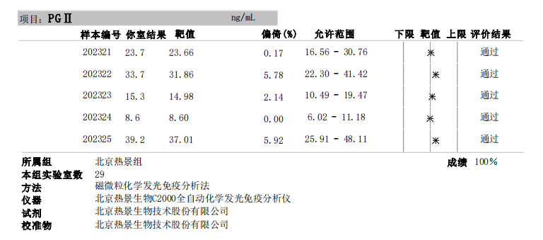 胃蛋白酶原(PGI、PGII、PGI/PGII比率)室間質(zhì)評(píng)成績單
