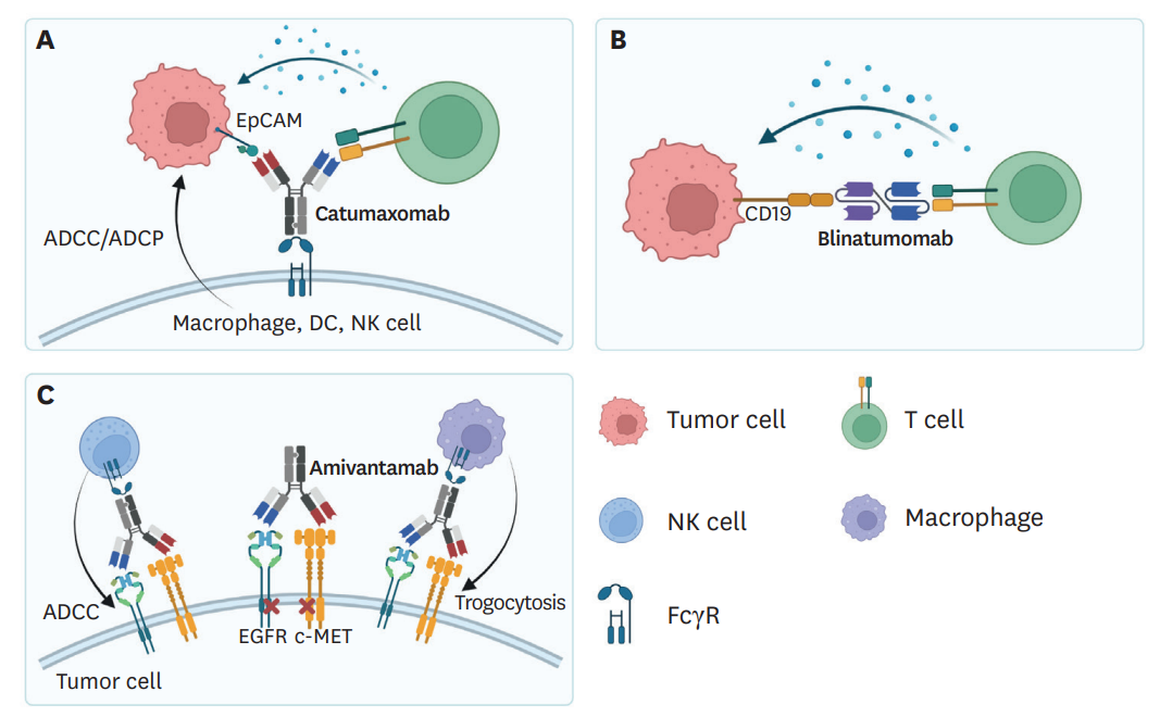 T細(xì)胞接合器利用TAA和TCR成分(主要是CD3),它們連接腫瘤細(xì)胞和T細(xì)胞,繞過TCR-MHC-I相互作用。因此,無論抗原特異性如何,T細(xì)胞結(jié)合器都會觸發(fā)T細(xì)胞活化,產(chǎn)生包括穿孔素和顆粒酶在內(nèi)的細(xì)胞毒性分子,以殺傷腫瘤細(xì)胞。