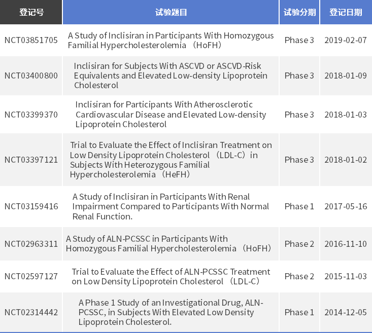 表4 leqvio已完成的臨床試驗信息