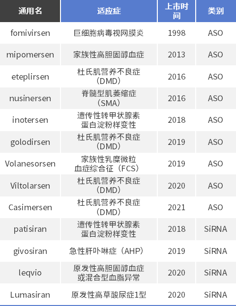 已上市的小核酸藥物