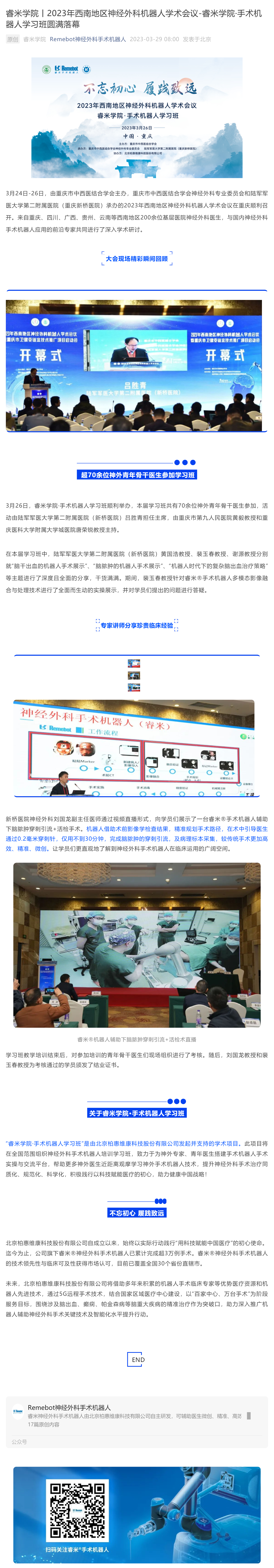 睿米學(xué)院丨2023年西南地區(qū)神經(jīng)外科機(jī)器人學(xué)術(shù)會(huì)議-睿米學(xué)院·手術(shù)機(jī)器人學(xué)習(xí)班圓滿落幕